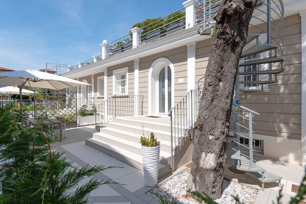 Villa Levante, in addition to all the comforts mentioned above, has a large terrace with a view, on one side, of the Lido di Camaiore coastline and, on the other, of the Apuan Alps. Here we have designed a true oasis of relaxation, equipped with sunbeds and umbrellas, where you can spend your stay in tranquility.