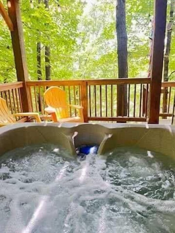 5 PM check in as cleaning ladies were still there. They were complaining that they only had a couple of hours to clean a 3 story house.Trash bins were FULL at our arrival. Upon 5pm check in, I opened the hot tub to see murky water with chemicals on top. There was a layer of oil on the water. I contacted the host and they responded quickly with a bold lie. He assured me that he changed the water that day and did the chemicals himself. I own a hot tub. There was zero evidence that the tub had been drained. Zero. I know what it looks like when you dump chemicals into dirty water. We did not use the hot tub as it looked to be a biohazard. Owner offered 75 for the inconvenience. Then stated that his technician okayed it after first telling me he was personally the one that treated it. The cleaning ladies were holding hot tub sanitizer in their hands as they were walking in and out of the house. I did NOT notice tools or a screwdriver, as one is needed to remove the panel to drain the tub. Please tell me why you would need so many chemicals to dump in clean water? AND you were able to fill it and heat it to 105 by 5pm??? Absolutely amazing. THIS IS SARCASM. I’m only writing all this because I’m genuinely upset at being lied to. Oh, and all the cameras are not cool. Please fix things in the home instead of leaving notes all over the house. If you actually fix the toilet, you won’t need to post instructions on how to flush. Also had to replace propane in firepit.