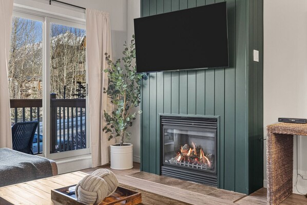Enjoy the light white noise of rustling leaves and passersby; this patio boosts rare views of both the mountains and forest. No staring at other units here!