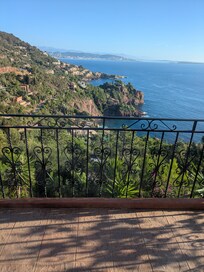 Der Ausblick auf die Bucht von Cannes ist atemberaubend. Daher auch die 5 Sterne. Wir waren 10 Tage im Ferienhaus. Die Terrasse ist großzügig und sehr gut mit Möbeln und Grill ausgestattet. Der Pool ist prima. Das Hausinnere ist sehr gut aufgeteilt. Es gib eine großes Wohnzimmer mit integrierter Küche (umfassend ausgestattet). Im oberen Stockwerk befinden sich die drei Schlafzimmer. Der Parkplatz ist abschließbar. Das Haus erscheint teilweise renoviert zu sein. Es wäre schön gewesen, wenn das Geschirr, die Bestecke, Töpfe, Pfannen und sonstige Küchenuntensilien sauber gewesen wäre. Wir haben alles vo der ersten Benutzung gespühlt. Wähernd des Aufenthalts waren der Sonnenschirm und der Pool-Roboter defekt. Beides wurde problemlos und zügig behoben, Danke. Einen größeren Supermarkt gibt es in 9 km Richtung Cannes.