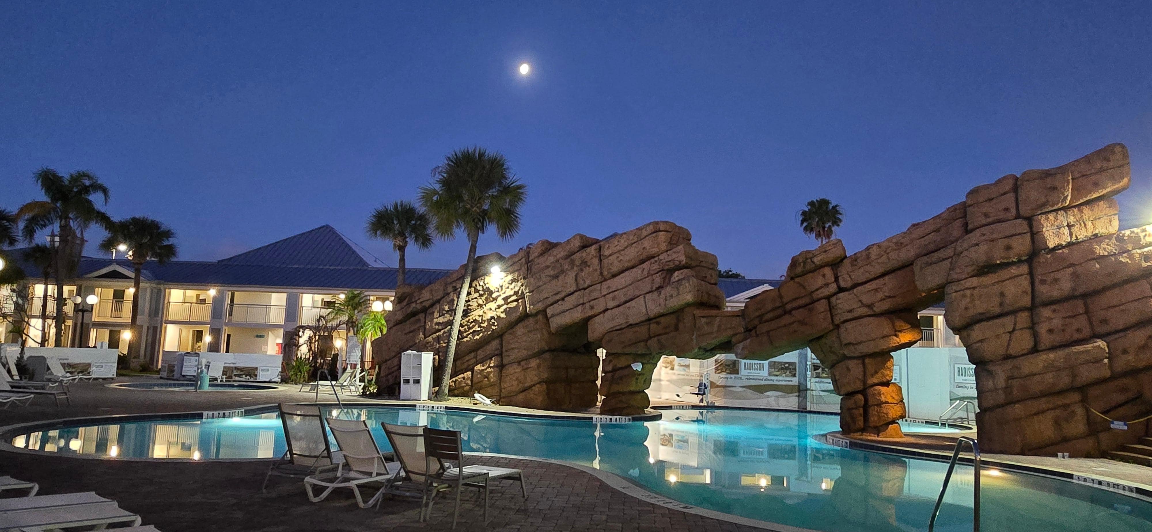 It was the perfect location near my nieces home for our mini family gathering. The kids LOVED the pool (and the quesadillas) & the adults enjoyed the Tiki Bar and relaxing too! The staff was wonderful & rooms were comfy & roomy for families of 4. Bathrooms were small, but was really nice to have separate Bedroom & Sofa/Tv/Kitchenette area w/refrigerator/microwave etc. Perfect for what we needed! Bonus: we got to see Artemis ll launch!