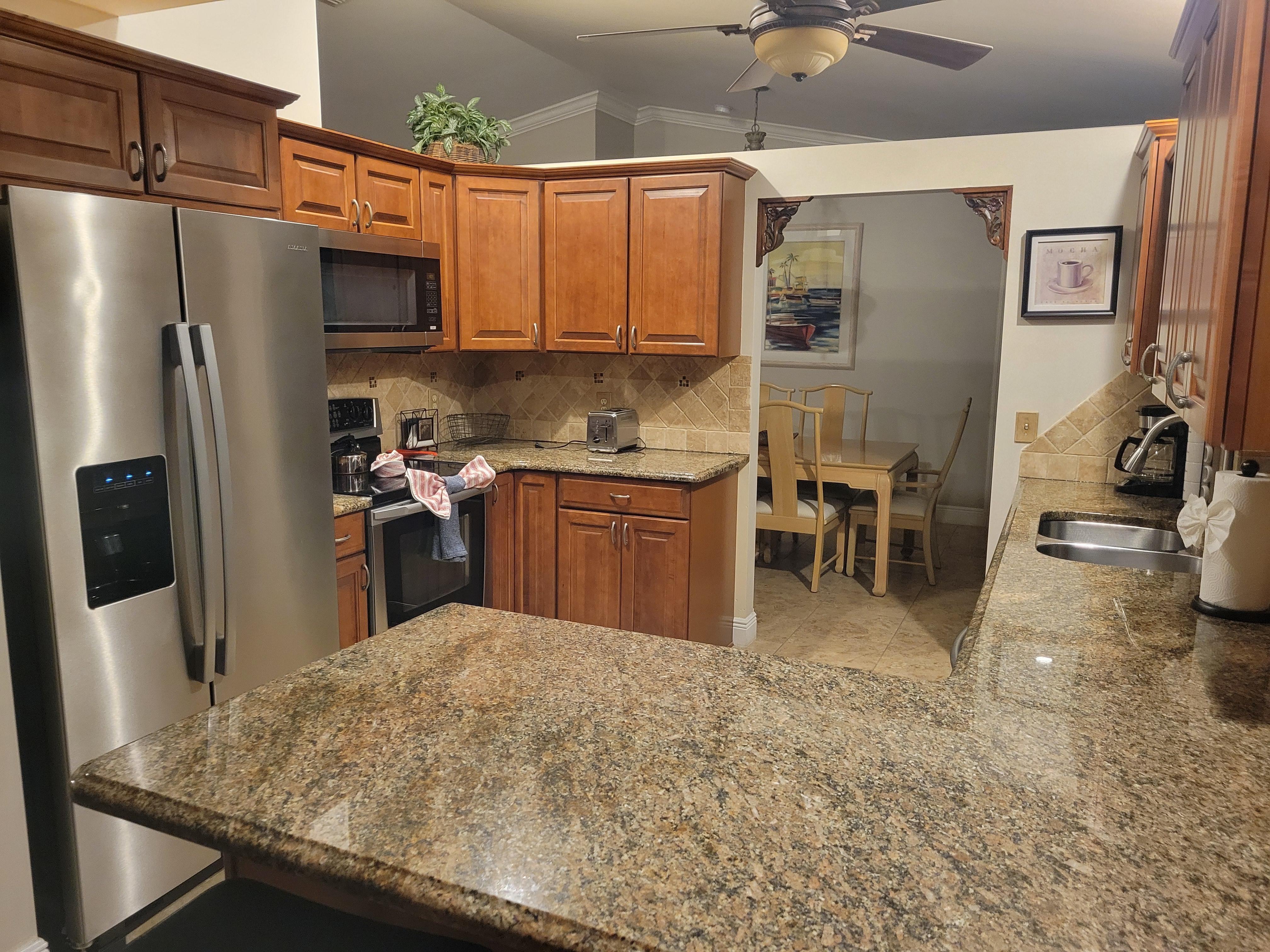 KITCHEN: Fully equipped, coffee maker, stainless steel appliances, granite countertops, tile backsplash, toaster.