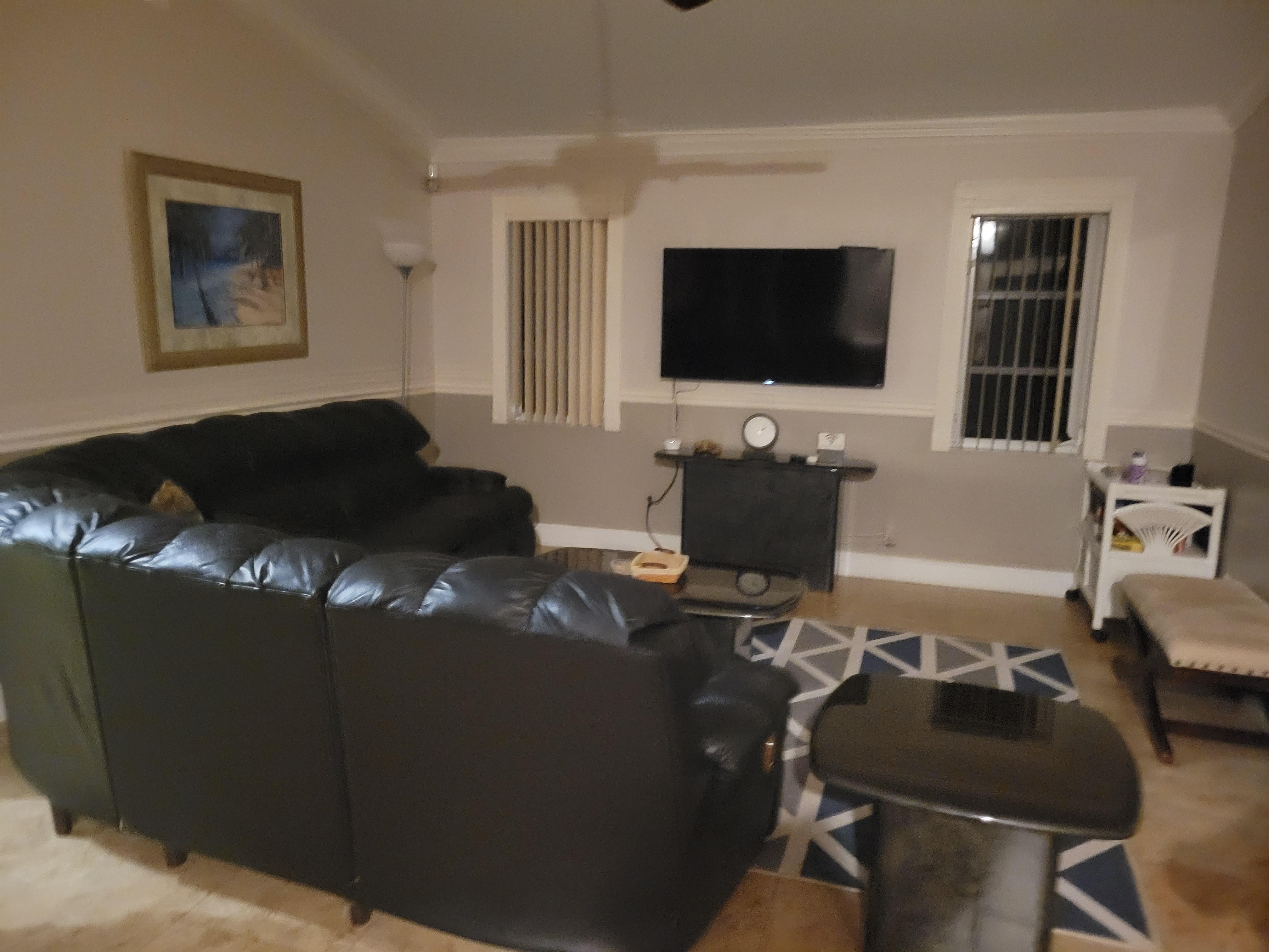 INDOOR LIVING: Newly renovated interior, 4 flat-screen TVs w/ Roku, tall ceilings, 2 dining tables, bar, sitting area, books and games.