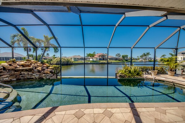 This is our fifth time staying at a home rental in the Cape Coral area, and this home takes first place. It was perfect. Check-in process was very easy. We got in late and had instant access.Bedrooms were roomy and comfortable. Having two master suites was ideal. My parents stayed on one side of the house, and my husband and I on the other. My two kids each had their own rooms. Which they were very happy about. The kitchen was fully equipped with very nice appliances. Including an air fryer which was wonderful with the kids!The lanai/pool area was dreamy. Everyone was able to be out there and live their best lives without interfering with each other. My parents could lay on one side, kids in the pool, I could lay on the other side, my husband spent lots of time watching the outdoor TV on the comfy couch. We ate every meal at the outdoor dining table. It was very private. I can not say enough good of this area. The canal. This was the only disappointing part of our stay, however totally out of the control of the home/host. The canal in this area is extremely low, no boats, and sparse fishing. However, we were still able to watch the turtles, otters, and many many species of birds. The location was nice. The home is on a fairly busy road, but the only time we noticed was when we were coming or going. There is a Target, Publix, and an Aldi within a mile or so of the home which was great. If you're on the fence of which home to choose, pick this one!