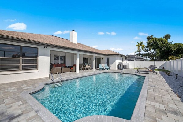 Welcome to your private Cape Coral vacation haven! Bathed in sunshine, this spacious villa is perfect for families, couples, and friends. Challenge each other in the fully equipped game room, practice your swing on the putting green, or simply relax by the pool with a good book. Newly decorated, every detail has been considered for an amazing vacation. Pack your essentials—just yourselves and your bathing suits—and get ready for a blissful retreat in this sunny paradise!