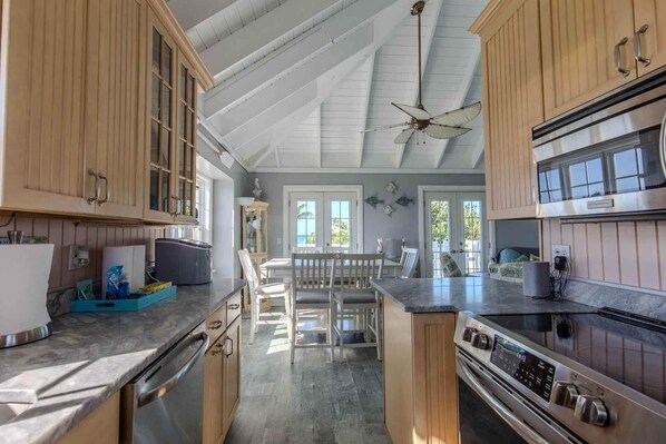 Pelican’s Perch comes stocked with your beach living needs. With beach towels, beach chairs, umbrellas, and toys and games for kids, this home makes it fun for everyone!