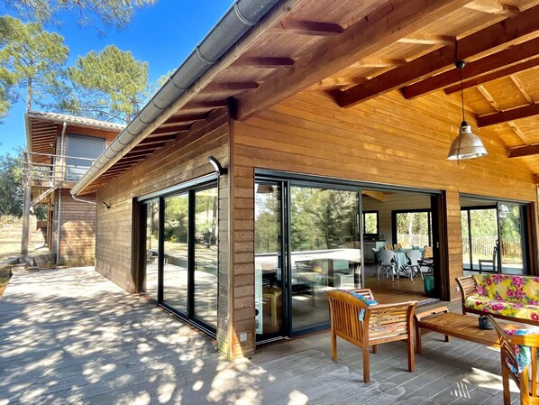 Villa Sylva: Große Holzrahmenvilla mit Salzwasserpool am Waldrand