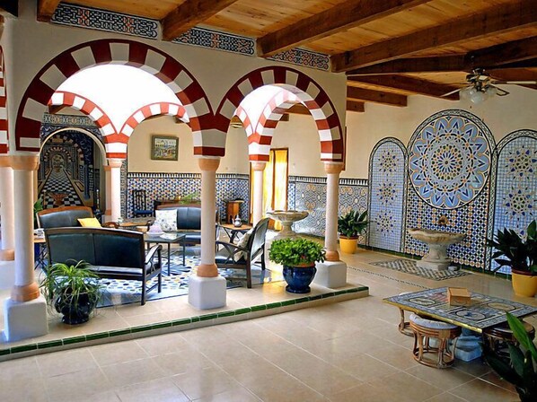 6-Zimmer-Haus 300 m2 auf 3 Stockwerken. Teilweise renoviert im Jahre 2025, stilvoll eingerichtet: grosses Wohn-/Esszimmer 120 m2 mit TV und Internationale TV-Sender (Flachbildschirm), DVD und Klimaanlage. Ausgang zur Terrasse. 1 Zimmer mit 2 Betten. 1 Zimmer mit 1 franz. Bett (160 cm, Länge 200 cm), sep. WC und Dusche. 1 Zimmer mit 1 franz. Bett (140 cm), sep. WC und Dusche. Offene Küche (Backofen, Geschirrspüler, 4 Glaskeramikplatten, Mikrowelle, Tiefkühler, elektrische Kaffeemaschine, Kapseln für die Kaffeemaschine (dolce gusto) extra) mit Esstisch. Dusche/WC. Obergeschoss: (Wendeltreppe) 1 Zimmer mit 1 franz. Bett (160 cm, Länge 200 cm). 2. Obergeschoss: (Wendeltreppe) Salon. E-Heizung. Laube 12 m2, Südlage. Terrassenmöbel, Gartengrill (mobil), Liegestühle (8). Herrliche Panoramasicht auf das Tal und die Landschaft. Zur Verfügung: Waschmaschine, Bügeleisen, Haartrockner. Garage (2 Autos), Höhe 225 cm, Breite 237 cm. Bitte beachten: Maximal 1 Haustier/Hund erlaubt. Rauchmelder. Drei Wand- und ein Lichtbrunnen im Wohnzimmer. Alambra-Mosaik (arabischer Stil) im ganzen Haus. Spieltische mit Gänsespielen und kleinen Steingutpferden. Die Schlafzimmer im Obergeschoss befinden sich im Turm. Der Salon ist nur über das Schlafzimmer mit franz. Bett erreichbar, von wo aus eine 180° Aussicht auf das umliegende Land genossen werden kann. Gas-Plancha auf der Terrasse, neben der Küche.
