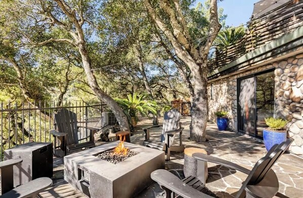 Enjoy the view from one of the decks. This space is great for a quiet weekend away from the city. You can explore Carmel Valley, Monterey and Big Sur, or simply enjoy the peacefulness of the property and surrounding atmosphere itself. The kitchen is perfect for preparing any meal. Cooking utensils, dishes, pots and pans, a refrigerator, gas stove and ingredients such as olive oil, salt, pepper, sugar, coffee and filters are provided.