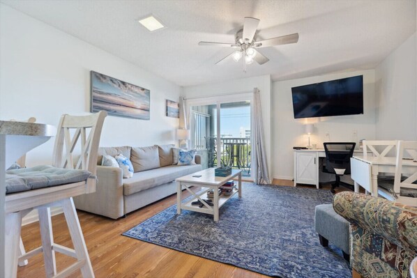 Welcome to Niche at the Beach! Our cozy one-bedroom condo sleeps 4, with a queen bed and sleeper sofa. Enjoy walking to restaurants, attractions, and the beach. Cool off in the pool or relax on the private balcony. Perfect for a romantic getaway or family vacation. Book your stay today!
