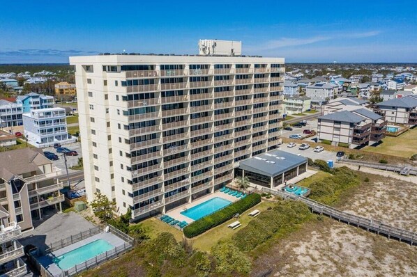 Hat Pelican Watch 1007-Lovely 3 bedroom 2 bath, oceanfront end unit on the 10th floor with elevators einen Pool?