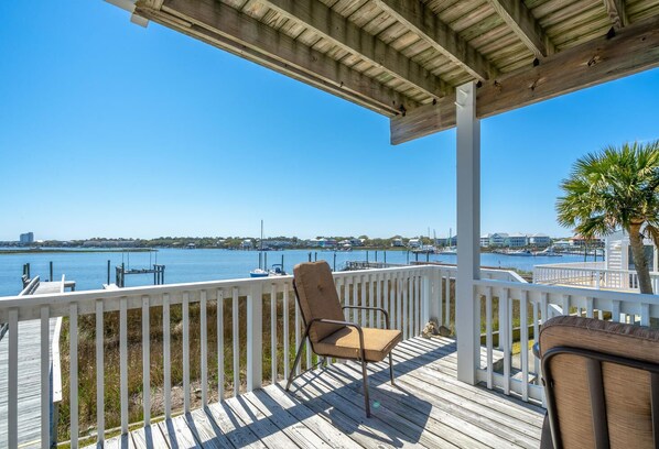 The best thing about this place is the location. It's close to the beach and we loved the dock. Other than that, there were several issues with the property. -We got to the place after traveling for 8 hours and there was no toilet paper, paper towels, trash bags, hand soap, or dish soap. When I texted the property manager I was told that I had to buy my own (which I've never seen in any VRBO I have stayed at). I was told that it was listed in the multiple page contract I signed (who reads that word for word?). They should've put that in the actual listing. -In the kitchen, the knives were all chipped and unsafe to use -My brother (who's quite slender) sat outside on a chair and fell through hurting himself and cut himself -We were told we had to put the dishwasher on before leaving, however the start button is hidden under the cabinet and not able to be actually pressed -The water pressure was non-existent -Despite having multiple bathrooms, you couldn't take more than one shower at a time (2 of us were showering when the water stopped mid shampoo in hair) -Took out a "clean" spoon that was covered in butter -The entire place was incredibly outdated which is sad considering how much I paid for the place. -Out of the 6 burners on the grill, only 1 worked and the grill was covered in sharp shards which, again, is unsafe to use -The shower curtain was moldy -Upstairs bathroom fan doesn't work **I would not stay here again considering all the other options in the area