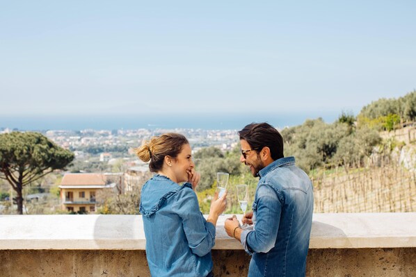 Wunderschön am Mittelmeer gelegen mit üppigen Oliven- und Orangengärten. Wenn Sie hierher fahren, ist es leicht, Pompeji (7 km), die Amalfiküste (30 km), Sorrent (25 km) und Capri (7 km + Fähre) zu erreichen. Das Haus ist im typisch italienischen Landhausstil eingerichtet, mit originalen Möbeln, Panoramablick auf das Meer, einer sonnigen Terrasse mit Esstisch / Lounge und Außendusche.