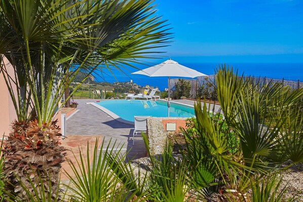 Die Villa ist im modernen Stil eingerichtet, mit Stücken sizilianischer Antiquitäten, die eine einladende und raffinierte Atmosphäre schaffen. Gegenüber der Veranda befindet sich die Solariumzone mit einem wunderschönen Pool (4x8 m), der teilweise zum Meer hin überläuft.