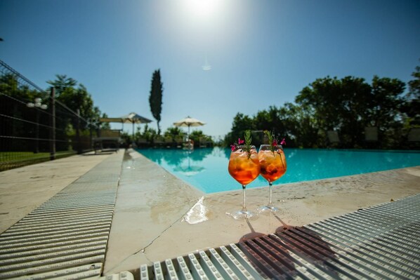 Rund um die Villa befindet sich ein großer Park mit alten Olivenbäumen, komplett eingezäunt mit einem Zaun und ausgestattet mit Pavillon, Gartenmöbeln, Barbecue und Holzofen wird der ideale Ort sein, um entspannte Abende mit Freunden zu verbringen. Zum Vergnügen von Erwachsenen und Kindern gibt es: den schönen eingezäunten Infinity-Pool (Größe m. 6 x 12, Tiefe m. 1,20-3,00 - geöffnet vom 01. Mai bis 30. September), die Tischtennisplatte und ca. 2 km entfernt den privaten Tennisplatz (Größe 18x36 m.) zur gemeinsamen Nutzung nur mit den Gästen der anderen 3 Villen, COLLINA DEI FIORI, CASALE IL TRECENTO und VILLA GIOTTO.