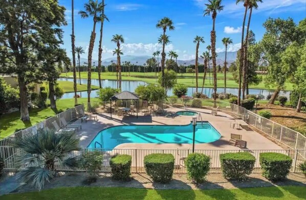 Fully remodeled in Jan 2026, this mid-century modern designed 3BD/2BA home sits directly on the Desert Princess Country Club fairway. Enjoy sealed concrete floors, brand-new bathrooms, doors, windows, and patio sliders throughout. Sleeps up to 7: King primary, Cal King guest room, and a flex room with queen, twin bunk, and work desk. Stylish, bright, and perfectly located for golf, relaxation, and Palm Springs living. Guests enjoy access to 23 community pools, EV chargers, and the resorts GYM.