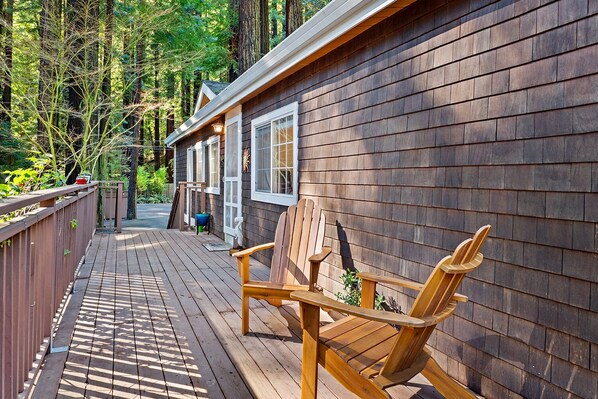 The property is so well kept, and had everything we needed. The deck overlooking Austin Creek provided the perfect spot for morning coffee and evening wine. It was serene, quiet, private and overall relaxing. Exactly what we needed for our weekend getaway The property's location is also fantastic. A short drive off of road 116, and about 15 minutes from downtown Guerneville.