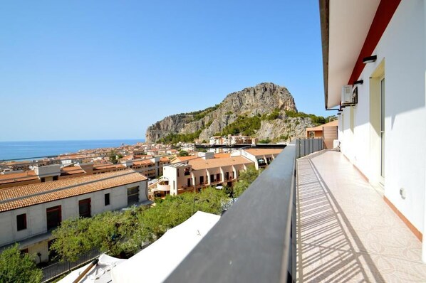 Es ist die größte Wohnung der Villa Vittoria (9 Betten), geeignet für große Familien oder Gruppen. Von all seinen Schlafzimmern aus kann man den gesamten Golf und die malerische Stadt Cefalù bewundern. Die Wohnung ist komplett eingerichtet und besteht aus: einem Schlafzimmer mit einem Doppelbett (Matratze 160x200) und einem Etagenbett (80x190); einem Schlafzimmer mit einem Doppelbett (Matratze 160x200) und einem Einzelbett (90x200); einem Schlafzimmer mit einem Doppelbett (Matratze 160x200) und einem Einzelbett (90x200); einem Badezimmer mit Dusche; einem Badezimmer mit Badewanne/Dusche; einer voll ausgestatteten Küche mit Backofen, Mikrowelle und sehr großem Kühl-/Gefrierschrank; einem langen Balkon zur exklusiven Nutzung mit Meerblick, der von jedem Schlafzimmer aus zugänglich ist; einer weiteren großen Terrasse zur gemeinsamen Nutzung (in der Nähe einer Straße, von der sie durch eine hohe und dichte mediterrane Vegetation getrennt ist). Möglichkeit zum Grillen im angrenzenden Gemeinschaftsbereich. Videoüberwachter Parkplatz.
