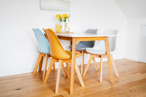 Die Ferienwohnung besteht aus einem großzügigen Wohnbereich und einem komfortablen Schlafzimmer mit einem Doppelbett. Der Platz für ein Kinderbett ist außerdem im Schlafzimmer gegeben, so dass Ihr Kleines bei Ihnen schlafen kann.