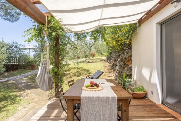 Zu Ihrer vollständigen Verfügung stehen das elegante Wohnzimmer mit direktem Zugang zur Terrasse und einem bequemen Schlafsofa; die gut ausgestattete Küche sichert Ihnen maximale Unabhängigkeit, während das helle und komfortable Hauptschlafzimmer Ihnen Erholung bietet, um jeden Tag optimal zu beginnen. Sie können dann die herrlichen Außenbereiche nutzen, die Terrasse mit einem Tisch und einer sehr bequemen Hängematte, um sich an den heißesten Nachmittagen auszuruhen, und den großen Pool mit Panoramablick auf San Gimignano und die umliegende Landschaft, den Sie mit den beiden anderen Cottages rund um den Garten teilen.