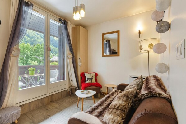 Ein flippiges, modernes Apartment für 4 Personen in einer ruhigen Gegend, nur einen kurzen Spaziergang vom Zentrum von Chamonix entfernt. Die Gäste können eine zentrale Lage mit herrlichem Blick auf die Berge genießen.