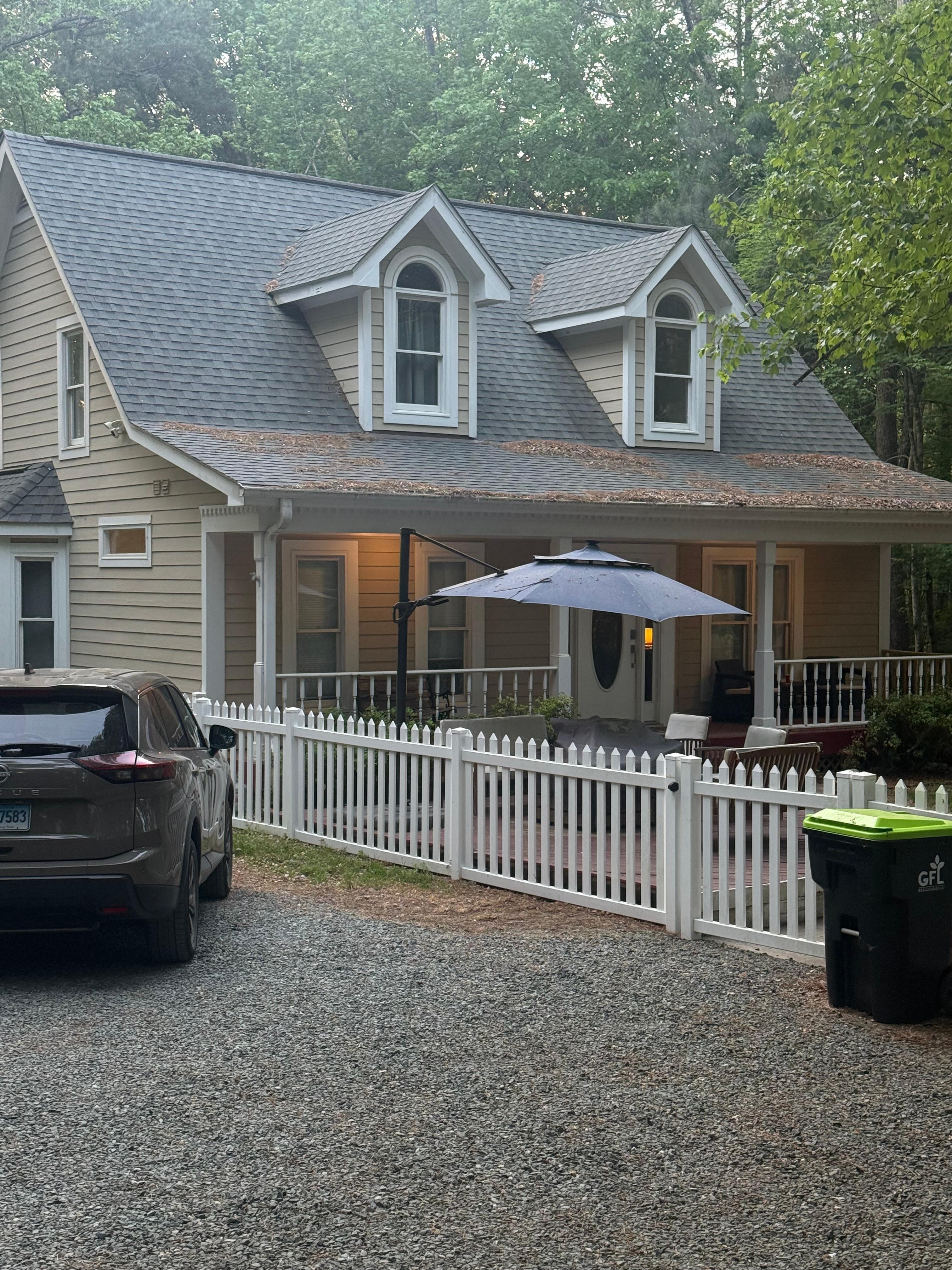 Located on a secluded 3.5-acre wooded lot, this 4BR / 3.5BA Chapel Hill retreat is a peaceful, family-friendly escape. With a well-stocked kitchen, formal dining area, vaulted living room with fireplace, and private home theater, there’s space to spread out and connect. Each bedroom features an en-suite bath and blackout curtains for restful nights, while the large deck with a fire pit invites stargazing and storytelling. With a fenced-in yard, dogs are welcome to join your travels.