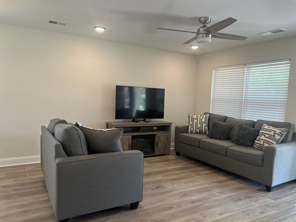 It is a beautiful house, modern very clean and comfortable I love everything about the house the full bathrooms specially the master bathrooms, kitchen living room the fire place, spacious yard..!!!