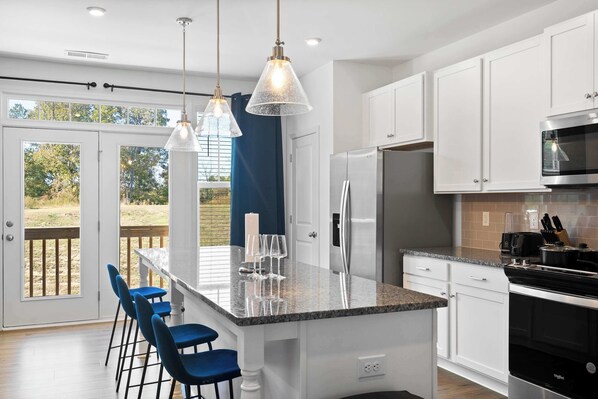 Begin your day with a perfectly brewed cup of tea or instant coffee—decaf or regular—prepared just the way you like it from the convenient coffee station in your upscale kitchen. Whether you're here for business or leisure, this space is designed to provide the perfect balance of comfort and convenience.