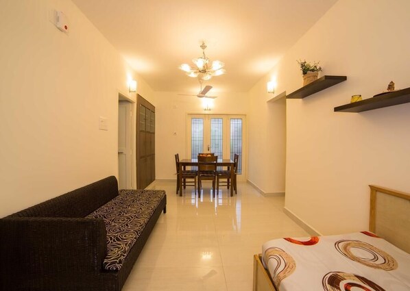 Welcome to this charming apartment in Chennai. With two cozy bedrooms featuring queen beds, guests find plenty of space to relax after a day of exploring. The two bathrooms add convenience, making mornings easy and stress-free. A cool, comfortable atmosphere awaits thanks to air conditioning, and an iron is available to keep your wardrobe fresh. Whether you’re here for work or leisure, this delightful spot offers a peaceful retreat. Enjoy all that Chennai has to offer when you stay at our place.