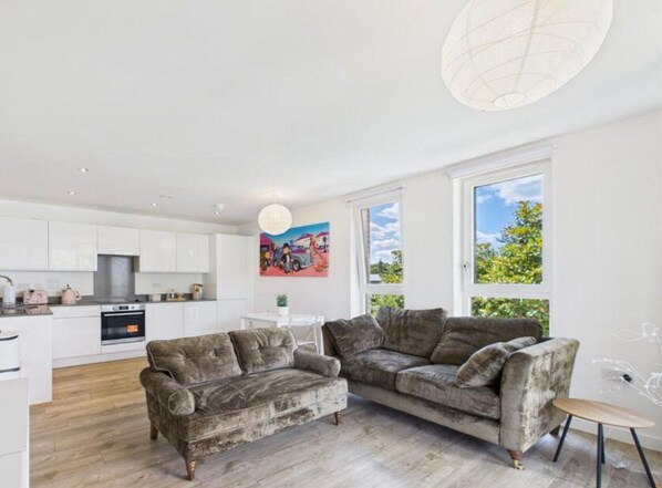 Welcome to your home away from home! This beautifully designed 2-bedroom apartment in Longcross combines modern comfort with stylish décor, making it the perfect retreat for business travelers, couples, or small families.