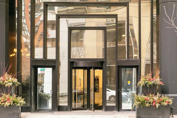 Great spot close to the subway so be prepared to use it! Everyone very nice including front desk and door man. Clean and with all needed amenities. We were prepared for the common issue with temperature control reported in reviews. It was toasty so we just ran the supplied fans at night and sometimes cracked the patio door to cool off. 7-11 on the corner, walk to target and great pizza downstairs. Thanks for the stay!