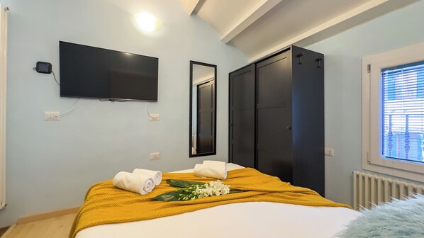 Im zweiten Stock , unter den Balken und in der Ruhe des historischen Viertels, erwartet Sie ein gemütliches Doppelbett , zwei Nachttische und ein großer Kleiderschrank. Ein einfacher und romantischer Rückzugsort, an dem die Stille der Gasse und das sanfte Licht der Fenster die Erholung zu einem wertvollen Erlebnis machen.