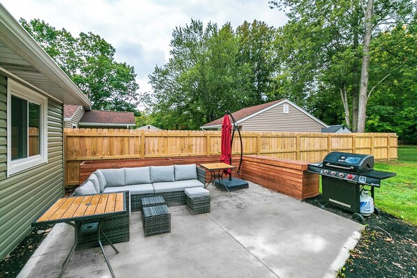 Sure, eating at the finest restaurants can be fun, but sometimes we all need a nice home-cooked meal. That's why our kitchen is fully stocked with all the essentials you'll need to cook you and your family a nice dinner. Also take advantage of the four burner grill outside!