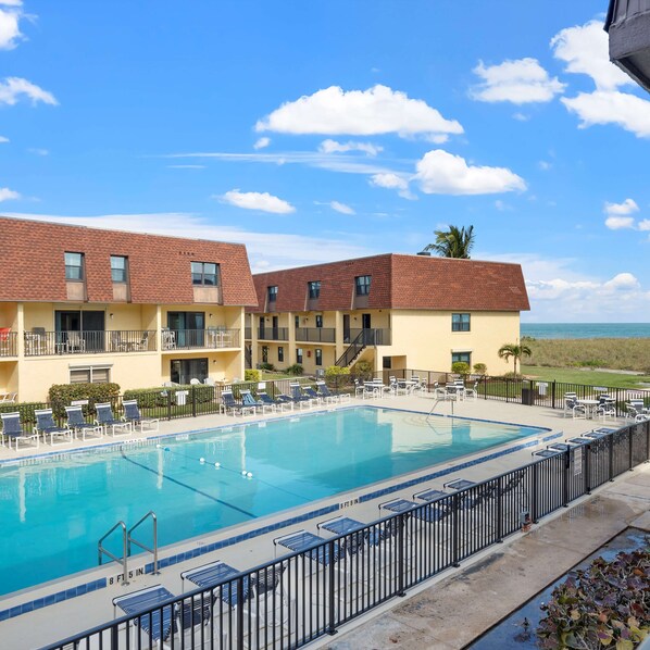 Start each day setting out on foot from your sublimely located 2-bedroom beachfront condo to take a leisurely stroll along the iconic Cocoa Beach Pier, where you’ll find a delightful mix of charming shops, eateries, and a family-friendly game area. Beach days will be fully maximized courtesy of the plentiful amenities supplied in the home including chairs, games, toys, and more. For the explorers in your family, the nearby Kennedy Space Center Visitor Complex is a must-visit. Inspire their curiosity with awe-inspiring space exhibits, interactive displays, and the chance to witness the marvels of space exploration. If theme parks are on the menu, Disney World, Epcot, Universal Studios, Sea World, and all the rest are about an hour’s drive inland, making day trips a literal breeze. Dive into poolside bliss by the stunning, newly renovated heated pool, complemented by an expansive deck for unrivaled relaxation. When it’s time to hit the beach, embrace the sunshine as you discover the convenience of being just steps away from the top-rated beach, accessible through the complex’s exclusive private boardwalk.