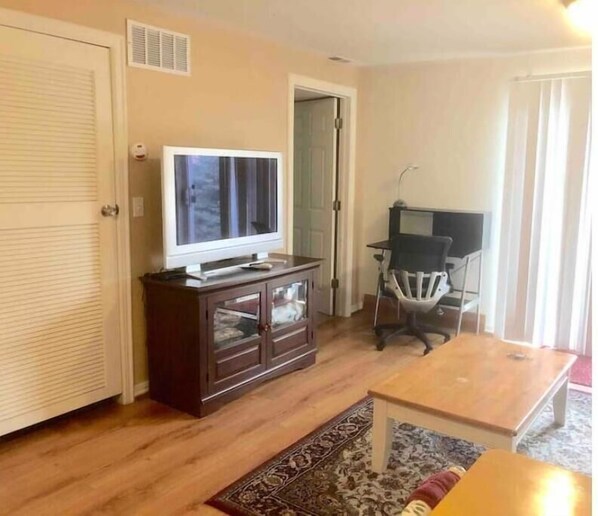 **Large flat screen TV with local channels only. DVD player. Desk/chair. Recliners in the living room area. Your own walk-out sliding doors. This requires you to access the private entrance from the side of the house which has brick steps. You have the option of entering through the main part of the house but it will not be "private" entrance.
