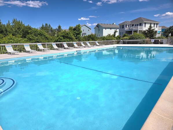 Community pool, Tennis/Pickleball courts, Keyless entry, Pre-made beds upon arrival with complimentary linens (bath towel, washcloth, hand towel per guest, kitchen towel), complimentary arrival starter kit (dish pod, tide pod, paper towel roll), 1 roll of toilet paper per bathroom, 6 flat-screen smart TVs, cable, high chair, pack-n-play, first-floor rec room for kids, skeeball, foosball, darts, tennis rackets, surf boards, boogie boards, beach chairs, 4 beach bikes, beach wagon, corn hole boards, charcoal grill with fish cleaning table, outdoor shower, high-speed wireless internet access, two east-facing decks, Updated smoke detectors, carbon monoxide sensor, and first-aid kit.