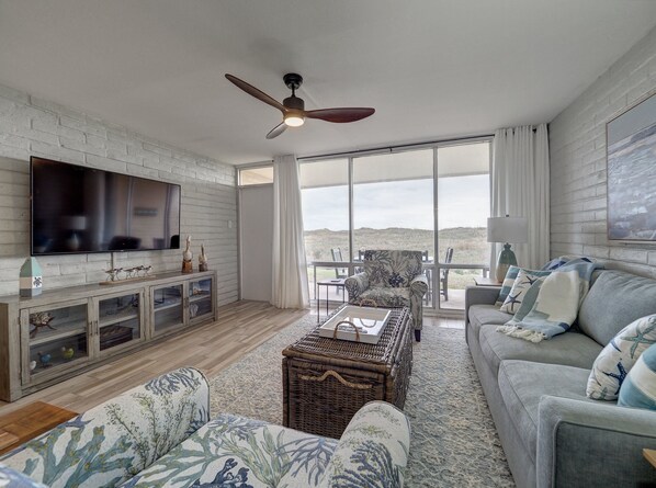 Beautiful view of the beach from the balcony, newly remodeled with new furniture