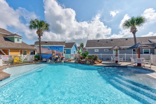 Paradise Pier PB122 is in Pirates Bay, a community is just outside the center of Port Aransas. It offers a fabulous slope entry pool, close to many of the restaurants, bars and shops that Port Aransas has to offer. One bedroom has a king. The second bedroom has a queen. There is a sleeper sofa in the living room. There are two full baths and the kitchen has everything you will need to cook your catch of the day. The colorful décor and exterior are a perfect compliment to a wonderful weekend or week in this condo. The condo offers 3 TV's along with wireless internet. Come, Relax and Enjoy!! This unit has parking for 3 cars maximum. Any additional cars will be towed. This is not a golf cart accessible property. STR#382430