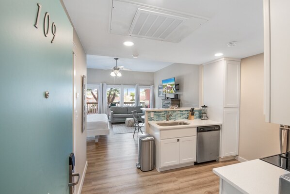 This vibrant ground-level poolside studio brings the fun right to your doorstep! Step out onto your private patio for instant access to the sparkling pool and BBQ pits, perfect for lounging, splashing, and grilling your way through vacation. Inside, you'll find space for up to four guests, with a comfortable king bed and a sofa sleeper, making it ideal for couples, friends, or small families. A fully equipped kitchen and full bath add all the comfort and convenience you need to settle in and enjoy your stay.