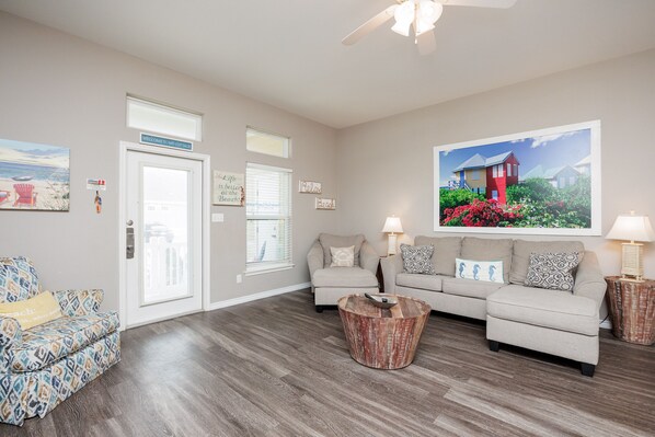 Guests enjoy the unbeatable combination of beach access, family-friendly amenities, and dog-friendly convenience. The private patio, coastal décor, and bright open spaces create a relaxing retreat, while two heated pools and a short walk to the beach provide endless fun for all ages.
