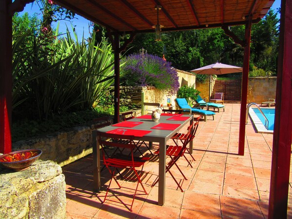 Grill und plancha stehen zur Verfügung sowie ein Garten der Kräuter (Basilikum, Minze, Petersilie, Koriander, Thymian, ein paar Tomaten etc ...).