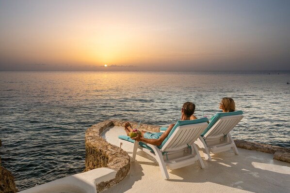 Outdoor amenities include 60 foot long infinity pool at the ocean edge, Jacuzzi tub, sundeck, poolside BBQ area and tropical gardens. The kids (both big and small) will love the ocean side diving platform. For those less adventurous there is easy ladder access to the ocean.