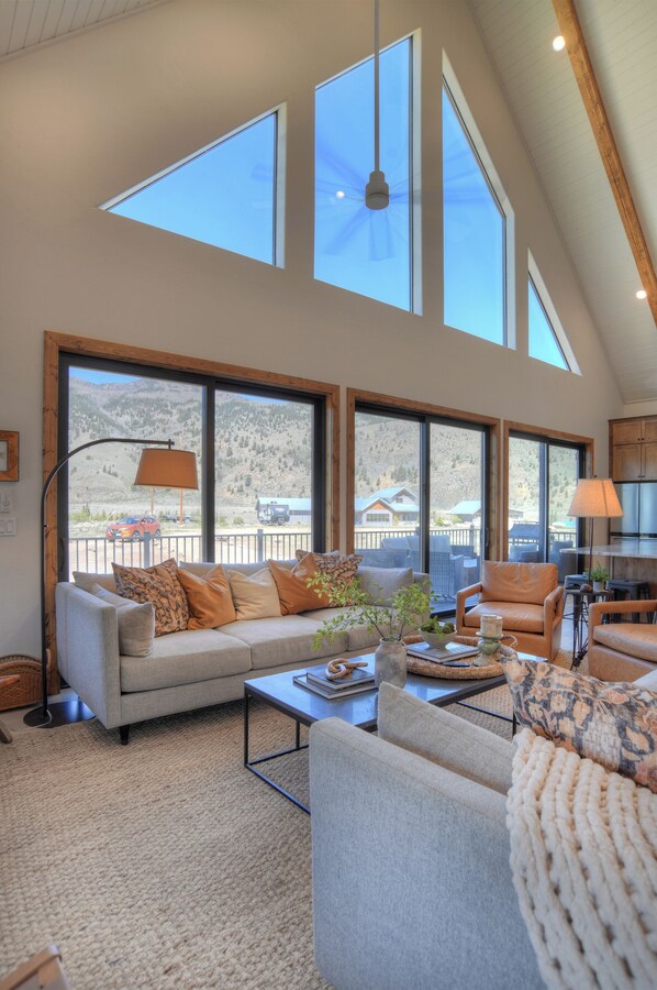 Inside, elegant design meets mountain warmth with an open-concept living space, vaulted ceilings, and abundant natural light. The gourmet kitchen features stainless steel appliances, granite countertops, and a large island perfect for meals and conversation. After a day of exploring the Rio Grande Valley, unwind in one of three inviting bedrooms, each offering comfort, privacy, and Smart TVs for easy relaxation.