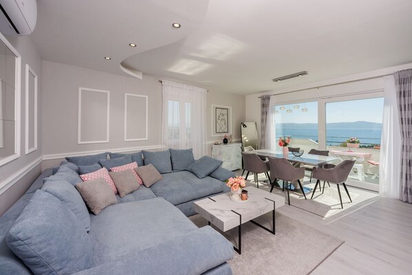 Exquisites Apartment nur 350 Meter zum Strand mit herrlichem Meerblick, Privatparkplatz, WiFi