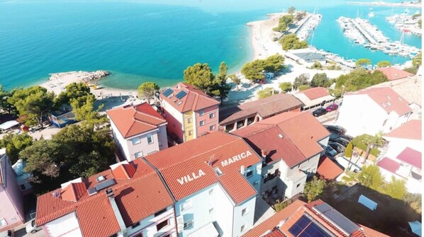 Infos über Villa Marica: - Strand (über die Straße) - 10 einzelne Apartments - Zugang zur Chillout Lounge mit außen Whirlpool - Zugang zum Grillplatz (großer Napoleo Grill) - Zugang zur Lounge Terrasse - Geschirr, Besteck, Kühlschrank, Herdplatte - Küchenzeile mit Kühlschrank - Klimaanlage in allen Zimmern - SAT-TV, LCD-Fernseher - Badezimmer (WC, Dusche, Handtücher) - Kostenloser Internetzugang (Wi-Fi) - Parkplatz (vor dem Haus - öffentlicher Bereich) - deutschsprachige Betreuung.
