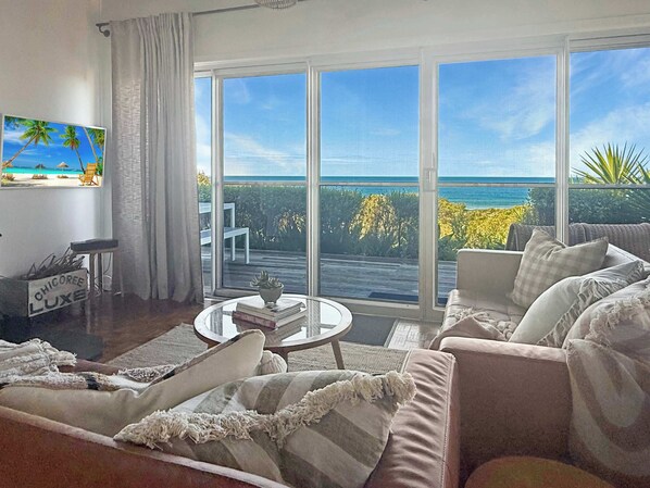 Kürzlich renoviert mit brandneuen Bad und Whirlpool, bietet dieses Ferienhaus Platz für bis zu 9 Personen in 3 Schlafzimmern, hat aber immer noch den Retro-Charme eines 50er-Hauses. Fantastische Aussicht über den Strand und direkter Zugang zum Strand.