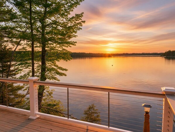 “Waterfront cabin w/ private deck overlooking the ocean & amazing sunset views.”