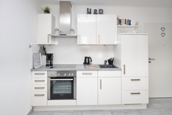 Kühlschrank, Ofen, Geschirrspüler, Wasserkocher mit Kaffee-/Teezubehör