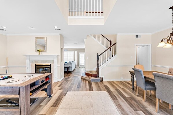 Welcome to our lovely 4 bedroom 2.5 bathroom house in Grapevine--- wine lovers' paradise and the Christmas Capital of Texas. 8 min to DFW airport, 9 min to Gaylord Texan Resort, close to Six Flags, AT&T stadium and Globe Life Field. This conveniently located, tastefully decorated, 2 story fabulous home, features 4 bedroom, 2.5 bathrooms, 2 dinning areas, 2 living room, is perfect for friends and family gatherings. Bedrooms Master bedroom with king-size bed, dressers, night stands and attached bathroom and 2 walk-in Closets, 65" smart TV, sleep 2 2nd bedroom with Queen-size beds, Dresser, night stands, walk in closet, sleep 2 3rd bedroom with Queen size bed, night stand, walk-in closet, sleep 2 4th bedroom with Queen size bed, daybed with one pull out bed, dresser, night stands, walk-in closet, sleep 4 Living room with 1 convertible sofa bed, Sleep 1. Bathrooms 1 half bath downstairs 2 full bathrooms upstairs. Parking: Guests can park in the garage, in front of the house and the driveway. Laundry:Guest have full access to the washer and dryer We have Wi-Fi controlled self-check in smart lock. Once your booking is confirmed, our smart lock will send the access code . No Parties or Events: We do not allow parties or events to be held with unauthorized / unregistered guests. ***Additional fee for 8+ guests Our nightly rate includes the first 8 guests, for an additional guest, a $25 fee will apply. ***Trash day is every Monday, please place trash cans in front of house on Sunday evening.