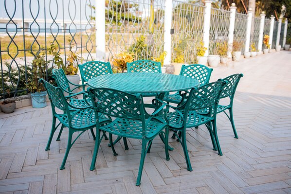 Apartment, 3 Schlafzimmer, barrierefrei, Balkon | Speisen im Freien